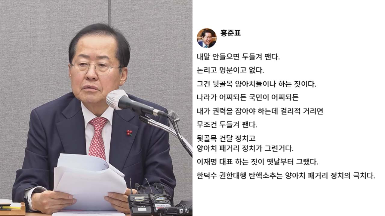 홍준표 "한덕수 권한대행 탄핵소추는 양아치 패거리 정치의 극치"