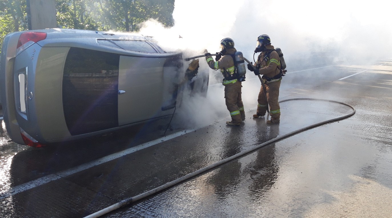 9일 오전 8시 34분쯤 경북 칠곡군 가산면 천평리 중앙고속도로 창원 방향 131㎞ 지점에서 SM5 승용차가 전도됐습니다.경북소방본부에 따르면, 고속도로를 달리던 차량이 해당 지점에서 중앙분리대를 충돌하면서 사고가 발생했습니다.1차로에 전복되면서 불이 난 차에서 자력으로 탈출한 탑승자 4명 가운데 3명은 병원으로 ...