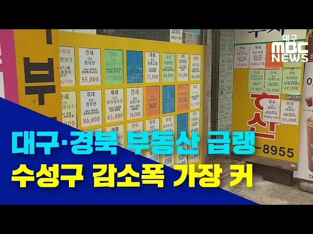 부동산 경기가 얼어붙으면서 거래가 줄었습니다. 한국감정원에 따르면, 지난달 대구 주택매매 건수는 2천 390건으로 지난해 같은 달보다 30% 줄었고, 경북도 2천 160건으로 지난해 같은 달보다 15% 줄었습니다. 지난달 대구 아파트 거래량은 천 690건으로 지난해 10월 3천 640 건과 비교하면 절반 수준으로 떨어졌습니다. ...