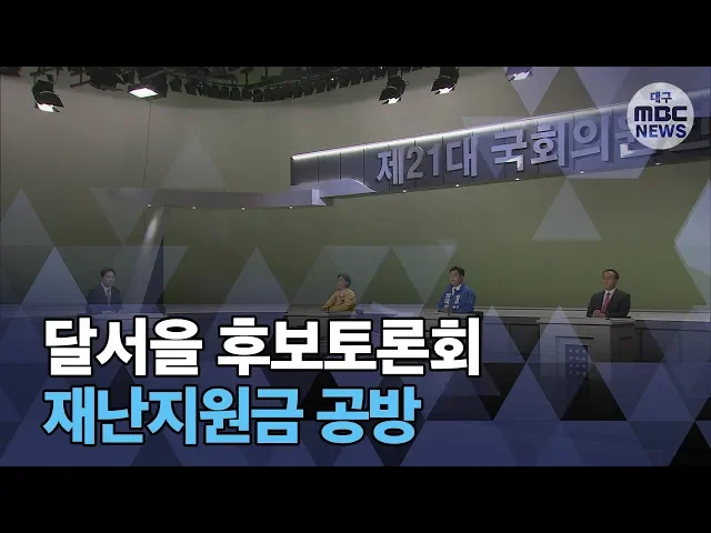 ◀ANC▶이번에는 달서구 을 토론회입니다. 재난지원금 지급 범위와 성서산업단지 활성화 방안 등을 두고팽팽한 기 싸움이 벌어졌습니다.양관희 기잡니다. ◀END▶ ◀VCR▶코로나 19사태, 재난지원금 지급 방식에 후보별 해법은 엇갈렸습니다.◀INT▶허소 후보/더불어민주당"선별하기 위해서는 사각지대 많이 생길 수밖...