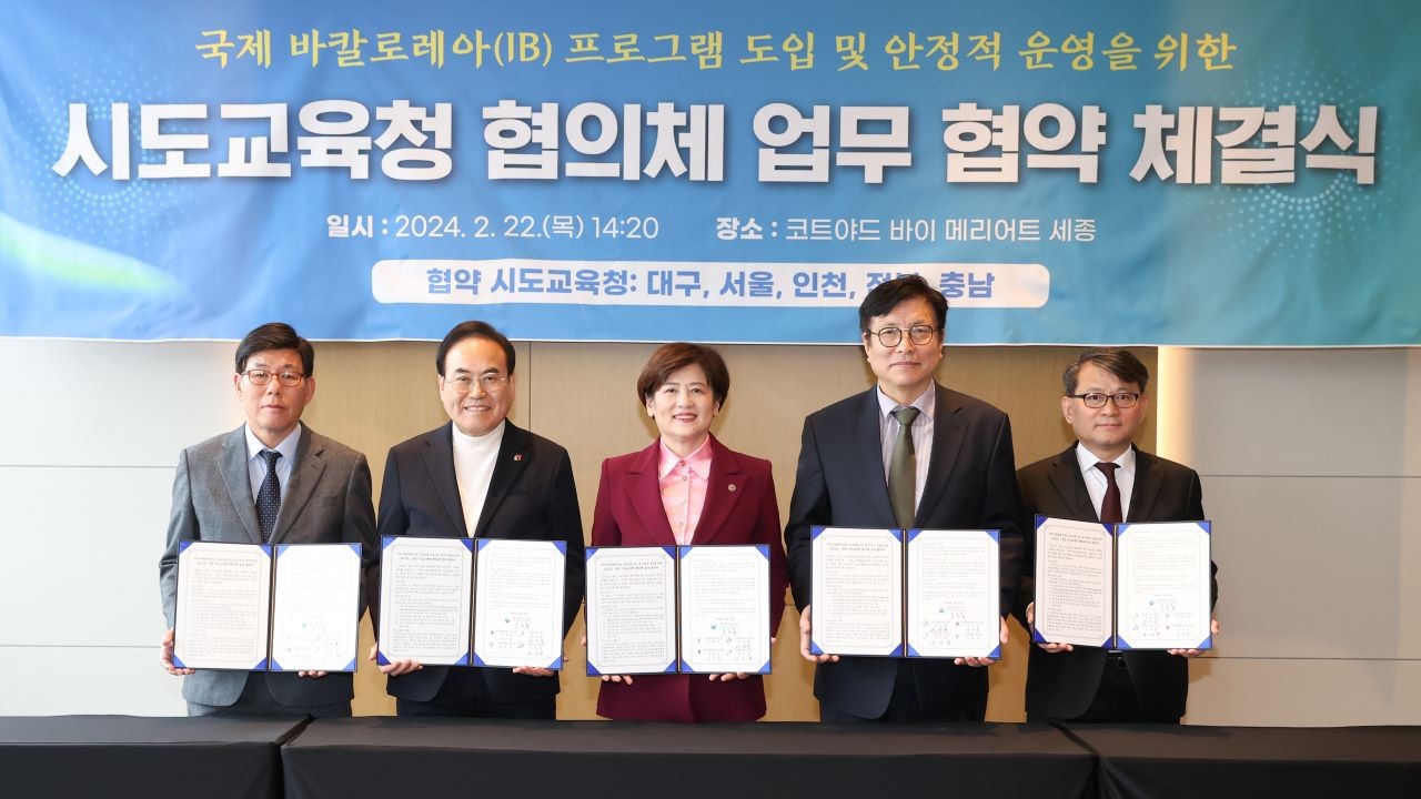 사진 제공 대구교육청대구교육청은 2월 22일 세종 메리어트호텔에서 서울·경기·인천·충남·전남·전북·제주 등 7개 시도교육청과 국제 바칼로레아(IB) 프로그램 도입·운영에 대한 업무협약을 체결했습니다. 업무 협약의 주요 내용은 공교육 내 IB 프로그램 운영을 위한 IB 본부와의 협력, IB 도입·운영 우수 사례 교류, IB 운...
