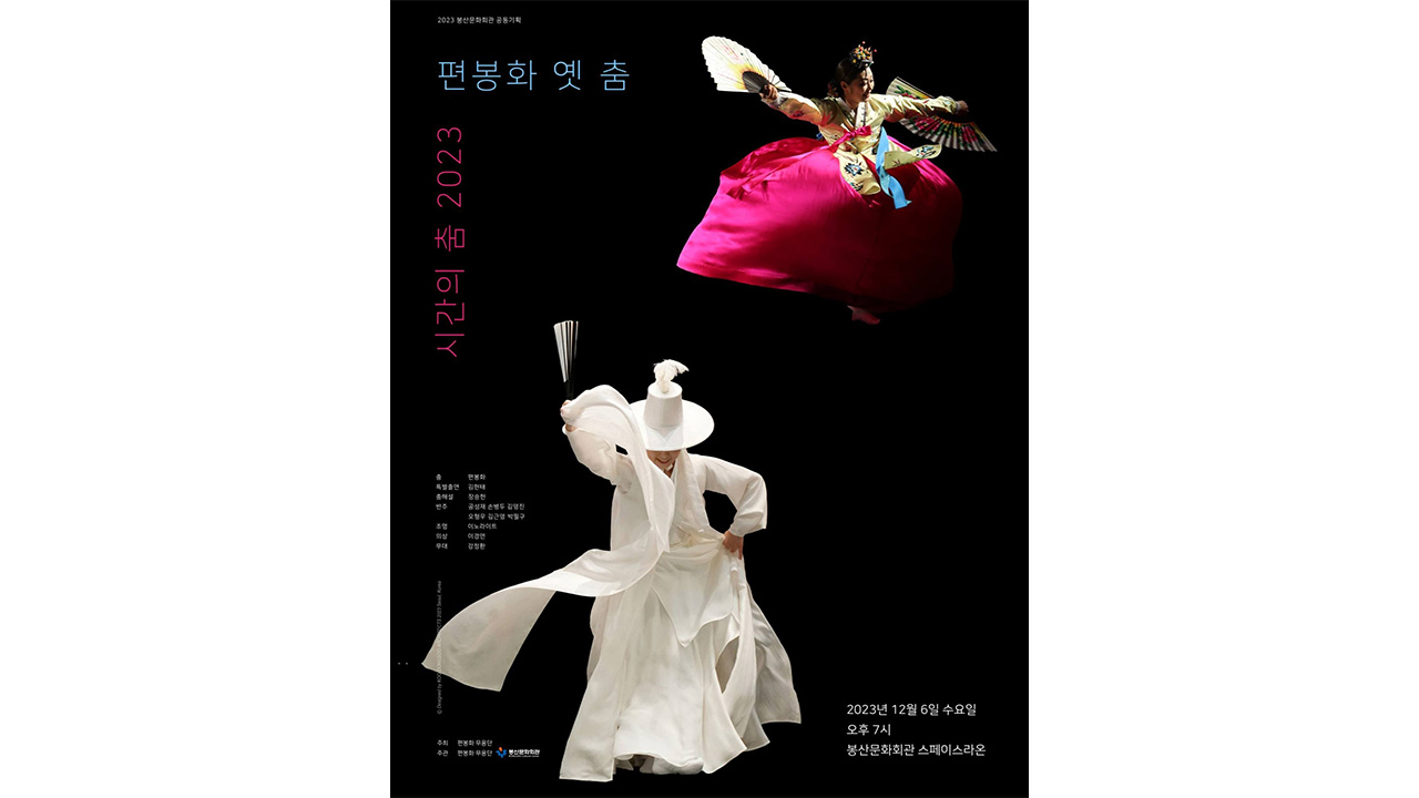 사진 제공 봉산문화회관대구 봉산문화회관은 12월 6일 오후 7시 스페이스 라운지에서 한국무용가 편봉화의 '시간의 춤 2023 편봉화 옛 춤' 기획공연을 엽니다. 입소리에 춤을 얹어 또 다른 질감을 표현하는 '입춤'과 대구 소고춤, 지게춤, 부채춤, 선 살풀이춤 등을 선보일 예정입니다. 편봉화는 국가무형문화재 제39호 처...