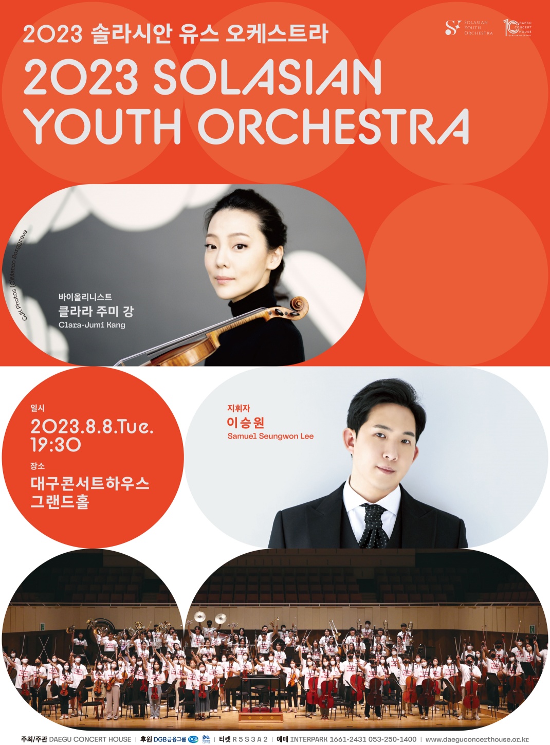 전문 오케스트라 단원을 준비하는 청년 음악인을 지원하는 프로그램 '2023 솔라시안 유스 오케스트라' 공연이 8월 8일 대구콘서트하우스 그래드홀에서 펼쳐집니다.전국에서 오디션을 거쳐 최종 선발된 80여 명의 청년 음악인들은 바이올리니스트 클라라 주미 강, 미국 신시내티 심포니 오케스트라 부지휘자인 이승원과 함께...