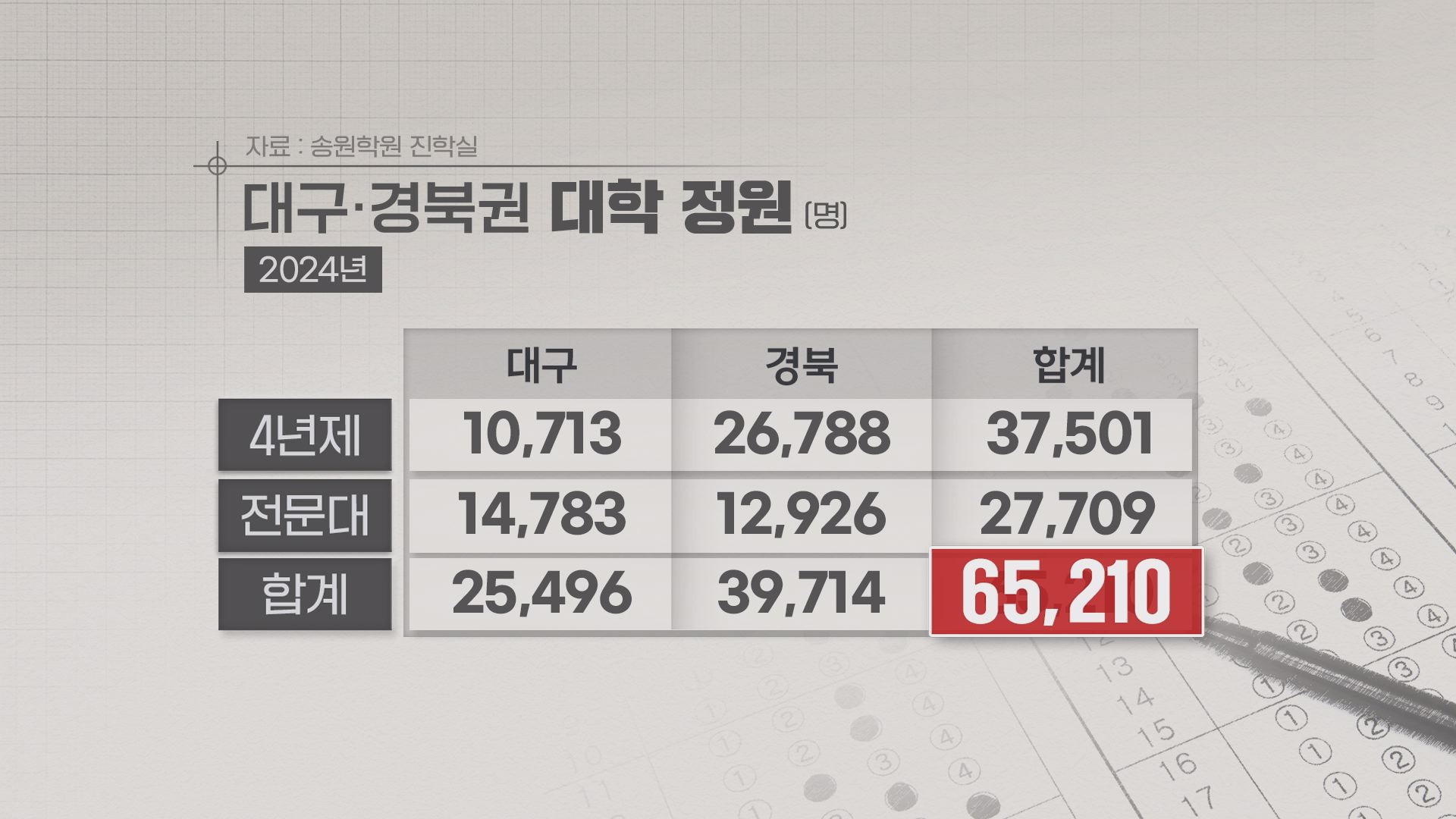 ◀앵커▶학령인구가 계속 감소하면서 지역 대학들이 매년 신입생 모집에 큰 어려움을 겪고 있는데요.2023년에는 상황이 더 심각하다고 합니다. 대구·경북지역 고3 수험생 수가 지역대학 전체 정원의 60%에 불과한 실정이라 대학마다 대규모 미달사태가 우려되고 있습니다.취재기자와 자세한 내용 알아봅니다.변예주 기자?2023...