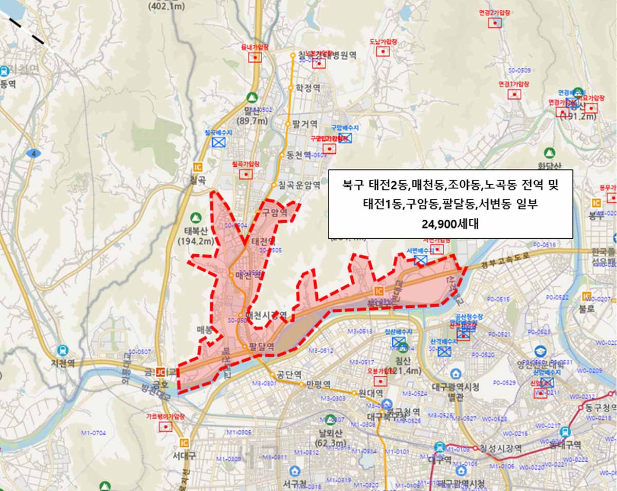 10월 18일부터 11월 4일까지 대구시 북구 태전2동, 매천동, 조야동, 노곡동 전역과 태전1동, 구암동, 팔달동, 서변동 일부 2만 4,900가구에 흐린 물이 나올 수 있습니다.대구시 상수도사업본부는 태전교에서 팔달고가교 북쪽 송수관 정비공사를 위해 북구 일부 지역 물 방향을 조정함에 따른 것이라며 관련 지역 주민들은 ...