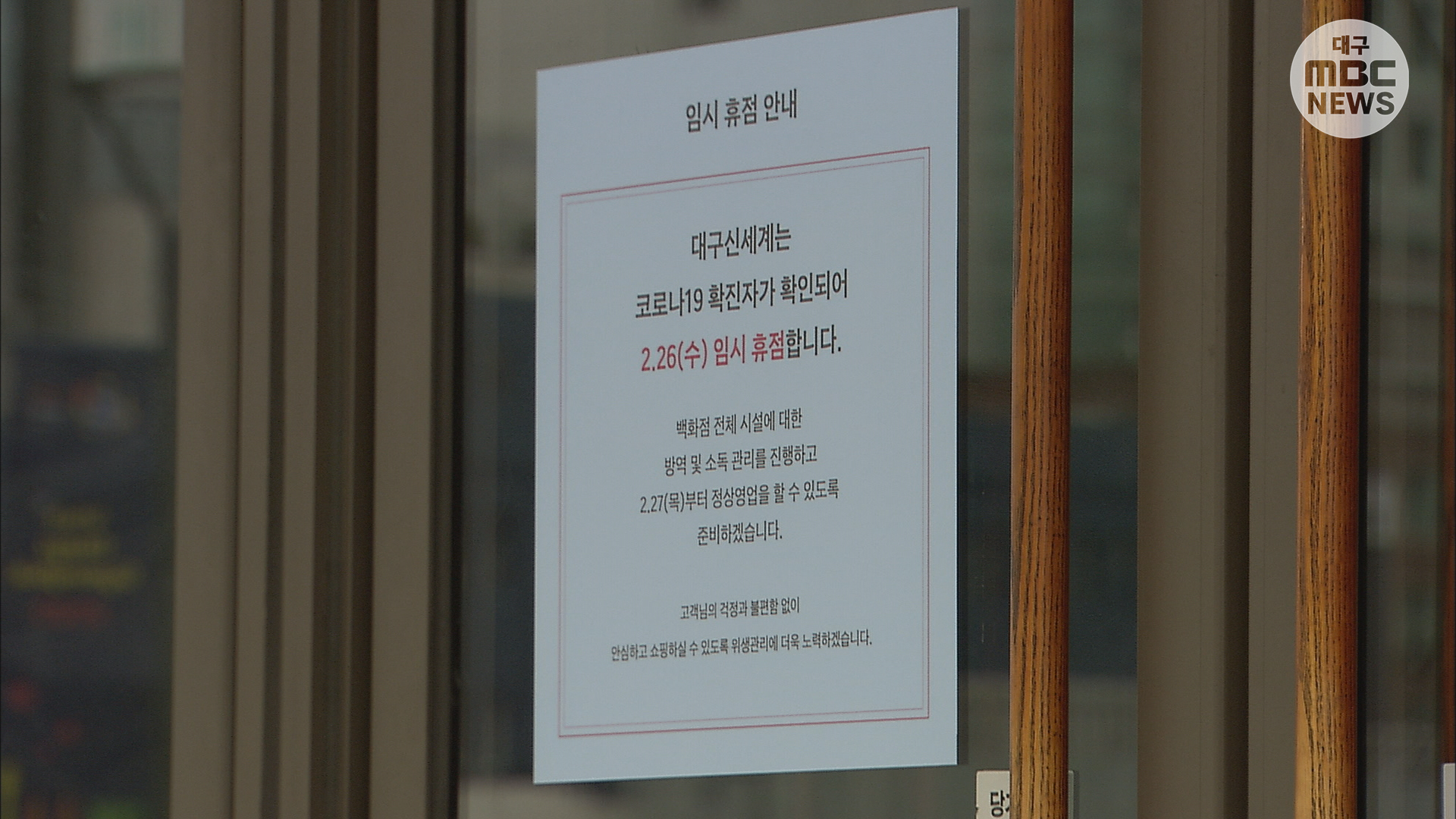 코로나 19 확진자 발생으로유통매장 폐쇄가 잇따르고 있습니다.대구 신세계백화점은백화점 7층 직원이어제 코로나 19 확진판정을 받아 오늘 전체 휴점에 들어 갔습니다.이 직원은 며칠 전부터 발열 등의 증세를 보인 것으로 알려졌는데,확진 소식을 들은 신세계백화점은 어제 오후 7시 영업을 조기 종료했습니다.홈플러스 ...