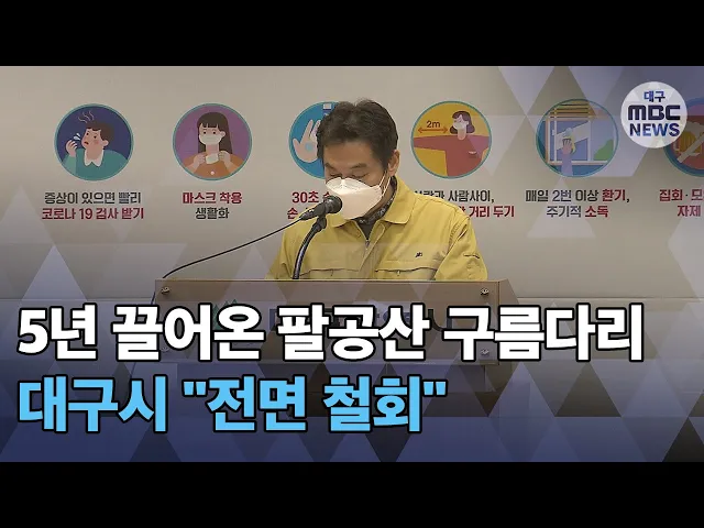 ◀ANC▶대구시가 특혜성 논란과 환경 훼손 등의비판을 받으며 5년을 끌어온팔공산 구름다리 설치 계획을전면 철회하기로 했습니다.시민사회단체와 불교계의 반대를 무릅쓰고강행하기는 사실상 어렵다는 판단을 한 것으로보입니다.윤영균 기자가 취재했습니다. ◀END▶ ◀VCR▶대구시가 팔공산 구름다리 사업을 공식적으...