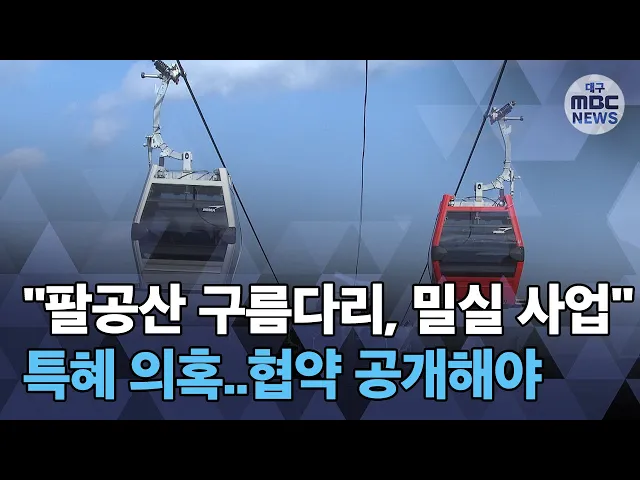 ◀ANC▶대구시가 추진하고 있는 팔공산 구름다리를 이용하기 위해서는 케이블카를 이용해야 하는 만큼 특혜 논란이 이어지고 있습니다.대구시는 여전히 케이블카 업체와의사회공헌 협약 내용을 공개하지 않고 있는데요. 여러 현행법을 어기고 있다는 지적도 나오고 있습니다.윤영균 기자가 취재했습니다. ◀END▶ ◀VC...