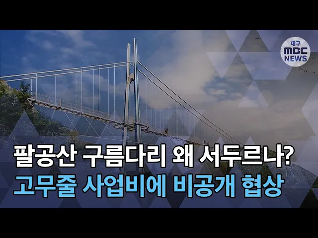 ◀ANC▶[남]대구시가 여러 논란으로 잠정 중단했던 팔공산 구름다리 사업을다음 달 시작하기로 하고관련 절차를 밟고 있습니다.시민사회단체에서는 여전히 문제가 많다며사업을 중단해야 한다고 주장합니다.[여]오늘 첫 소식은 팔공산 구름다리를 둘러싼 쟁점을 준비했습니다.보도에 윤영균 기잡니다. ◀END▶ ◀VCR▶...