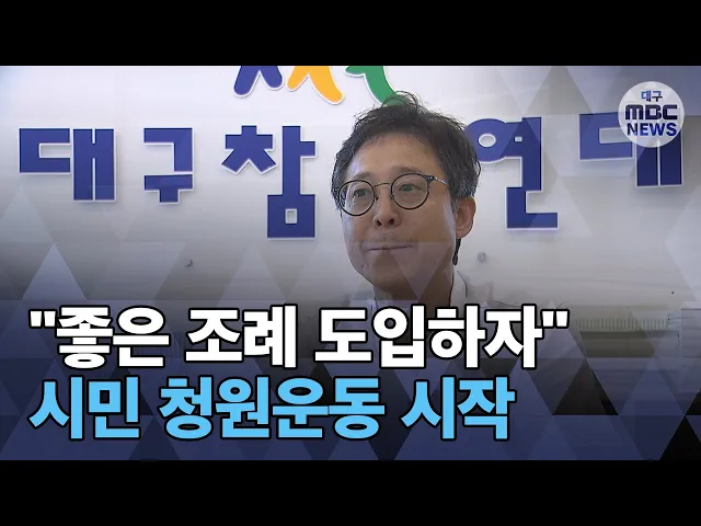 ◀ANC▶모든 국민에게 적용되는 헌법, 법률과 별개로대구시나 각 구·군에서는 조례라는 것을만듭니다.대구시의 조례는 다른 시·도에 비해 수도 적으면서 모호한 경우도 많은데요..다른 지역의 좋은 조례를 대구에 도입하자는 시민운동이 시작됐습니다.윤영균 기자가 취재했습니다. ◀END▶ ◀VCR▶(cg) 서울시의 감사위...
