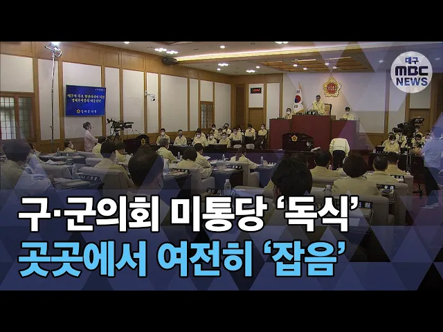 ◀ANC▶대구의 구·군의회들이 우여곡절 끝에 의장과 부의장, 상임위원장 등 후반기 의장단 구성을 마쳤습니다.여전히 전체 의원 비율보다미래통합당이 가져간 비율이 높았고잡음 역시 여전했습니다.윤영균 기자가 취재했습니다. ◀END▶ ◀VCR▶(cg1) 대구 서구의회는 미래통합당이 다섯으로민주당, 무소속을 더한 숫자...