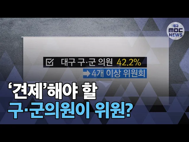 ◀ANC▶대구의 구·군청들은 여러 종류의 위원회를 만들어 운영하고 있습니다.그런데 구·군청, 즉 집행부를 견제해야 할 구·군 의원들이 이 위원회에 대거 참가해 과연 적절한가 라는 비판의 목소리가 나오고 있습니다. 윤영균 기자가 취재했습니다. ◀END▶ ◀VCR▶(cg) 대구시 구·군청에서 운영하는 각종 위원회입니다...