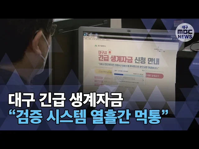 ◀ANC▶대구시의 긴급 생계자금 지급이 늦어지고 있다는 어제 보도의 속보부터 전해드리겠습니다.대구시는 신청자가 너무 많고, 담당 공무원들이 적어서라고 설명해 왔습니다.여] 알고보니 대구시의 검증 시스템이 열흘 정도 먹통이었던 것으로 밝혀졌습니다.윤영균 기자가 보도합니다. ◀END▶ ◀VCR▶대구시는 긴급 ...