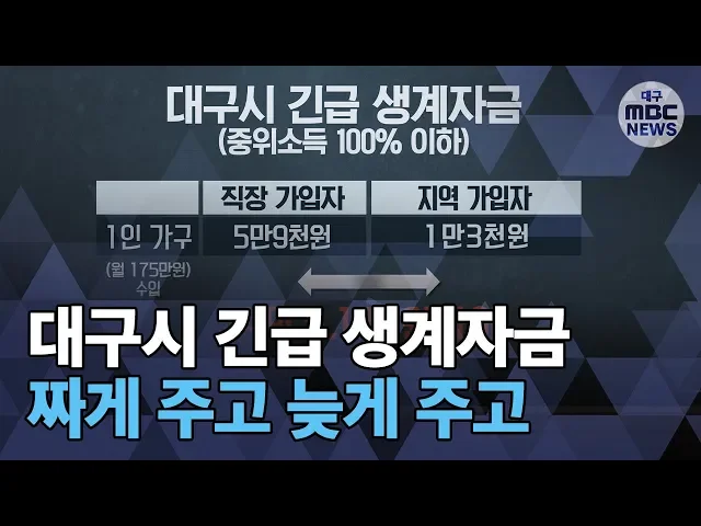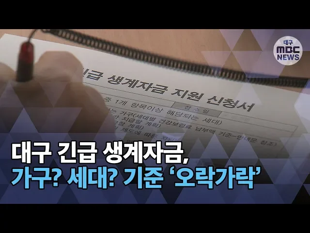 ◀ANC▶대구시에서 지급하는 긴급 생계자금, 왜 이렇게 뒷말이 많은 걸까요?지급 기준을 다른 지역보다 더 엄격하게 해 혜택보는 사람이 적었다는 보도를 여러 차례 해 드렸는데요..이번에도 비슷한 내용입니다.대구시가 지원받는 대상을 늘리기는커녕거꾸로 정책을 세워서, 생계자금을 못 받게 되는 경우가 적지 않습니...