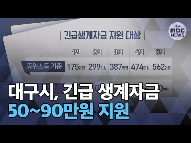 ◀ANC▶대구시가 코로나 19로 벼랑에 몰린 45만 가구, 108만 명에게 많게는 90만 원까지긴급 생계자금을 지원하기로 했습니다.누가 얼마나 받게 되는지윤영균 기자가 정리했습니다. ◀END▶ ◀VCR▶중위소득 100% 이하 45만여 가구, 시민 108만 명 정도가 지원을 받습니다.가구 수로 치면 대구시 전체 가구의 45%쯤 됩...