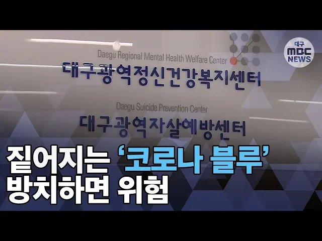 ◀ANC▶코로나19 사태가 두 달을 넘기면서대구에서는 우울하다는 사람이 많습니다.이른바 '코로나 블루' 현상인데,5년 전 메르스 사태를 되돌아보면시간이 지나도 우울이나 불안이 여전하다는연구 결과도 있는 만큼 대책이 필요합니다.윤영균 기자가 취재했습니다.◀END▶◀VCR▶우울증이나 자살 같은 정신건강 상담 전...