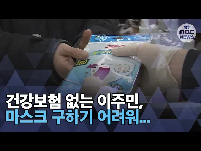 ◀ANC▶마스크는 요즘 필수품이자 민감품목이 됐습니다. 길게 줄을 서도 구하기 어려운 마스크,사회적 약자, 소수자인 이주민이나 불법체류자는 어떻겠습니까?그들의 사정을 윤영균 기자가 취재했습니다. ◀END▶ ◀VCR▶한국에 온 이주민들은여섯 달을 채우기 전까지는건강보험에 가입할 수 없습니다.미등록 이주 노동...