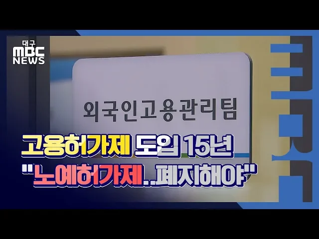 ◀ANC▶ 이주 노동자를 관리하는 제도인 고용허가제가 도입된 지 15년이 지났습니다. 합법적인 틀 안에서 외국인을 고용하자는 취지였지만 오히려 불법 체류자를 양산하고 있습니다. 윤영균 기자가 폐지하자는 목소리를 취재했습니다. ◀END▶ ◀VCR▶ 대구고용복지플러스센터 1층에 있는 외국인 고용관리팀입니다. 이주...