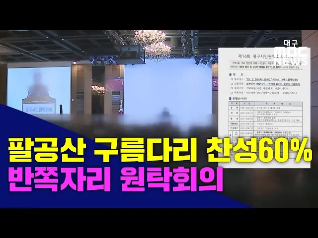 ◀ANC▶ 대구시가 팔공산 구름다리 건설 문제를 내일 열리는 시민원탁회의에 올리기로 했습니다. 여론을 듣기 위해서인데, 진행순서를 봤더니 찬성만 있고 반대측 의견은 모두 빠졌습니다. 여] 사업을 밀어붙이기 위해 시민원탁회의를 들러리 세운 것이나 다름없는데, 이러고도 대구시는 찬성과 반대 여론 모두 수렴했다고...