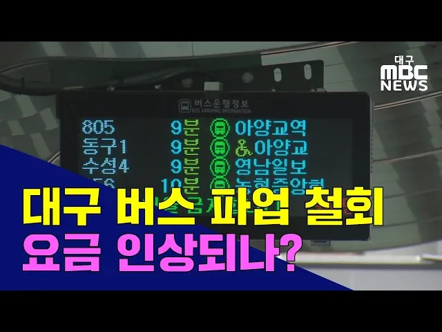 ◀ANC▶ 대구 시내버스가 임금협상을 타결해 내일로 예정했던 파업도 철회됐습니다. 하지만 임금인상을 비롯한 추가 비용부담이 커졌고, 대구시는 버스요금 인상을 검토하고 있습니다. 윤영균 기자가 취재했습니다. ◀END▶ ◀VCR▶ 다른 시,도 버스노조는 주 52시간 근무에 따른 근무시간 단축과 준공영제 시행을 요구...