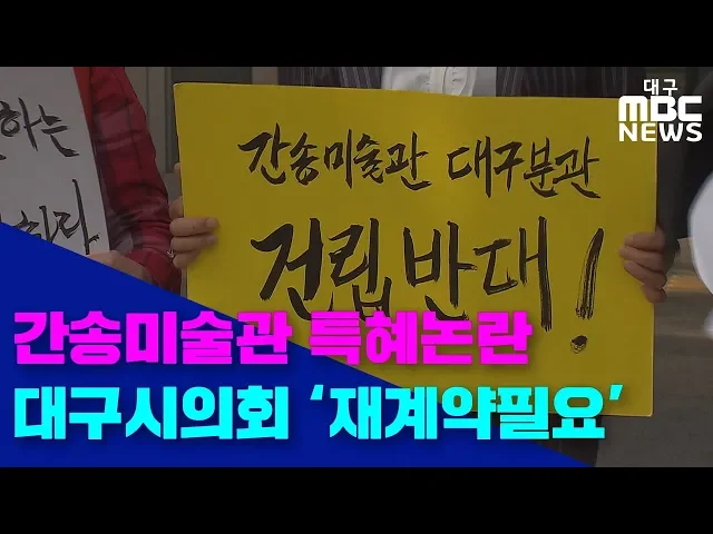 ◀ANC▶ 오는 2022년에 문을 열 예정인 대구 간송미술관을 두고 특혜 논란이 이어지고 있습니다. 일부 시민사회단체들이 반대로 돌아섰고 찬성하던 대구시의회에서도 재계약을 해야 한다는 목소리가 나오고 있습니다. 윤영균 기자가 취재했습니다. ◀END▶ ◀VCR▶ (cg) 대구시와 간송미술문화재단이 지난 2016년 12월...