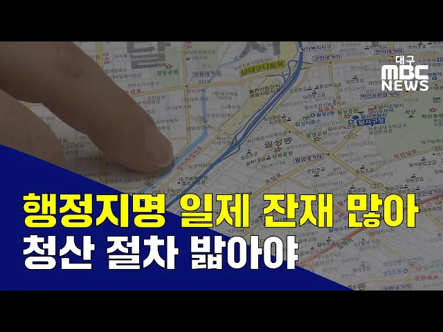 ◀ANC▶ 올해는 3.1운동과 대한민국 임시정부 수립 100주년이 되는 해지만 여전히 일제의 잔재가 많이 남아 있습니다. 민족정신을 말살하고 통치를 쉽게하기 위해 일제가 마음대로 바꿨던 행정지명을 이제는 정비해야 한다는 주장이 나오고 있습니다. 윤영균 기자가 취재했습니다. ◀END▶ ◀VCR▶ (s/u+cg) 저는 대구...